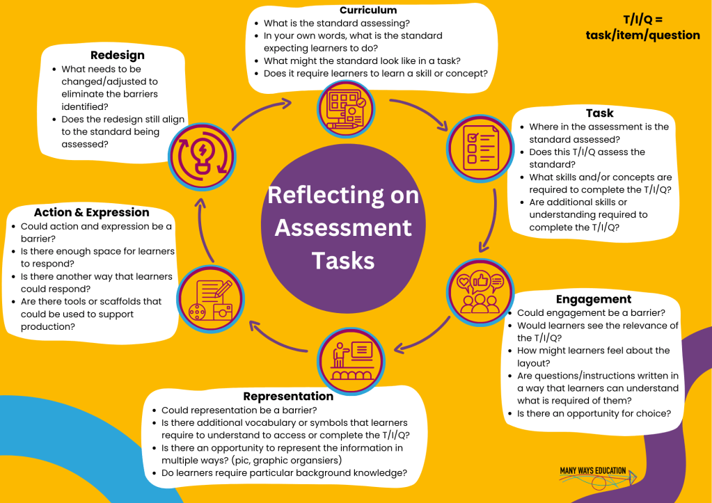 - A process to reflect on assessment tasks for accessibility
