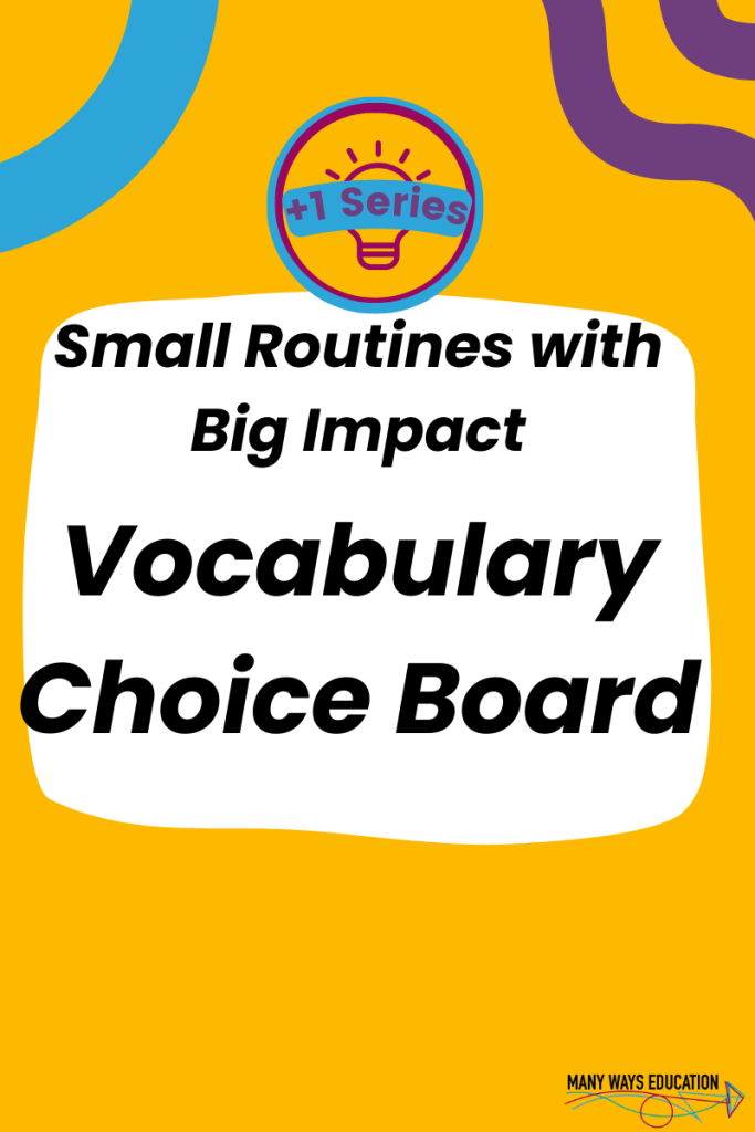 As per usual, this routine should be adapted to meet the needs of your learners but next time you are looking for a different way to review vocabulary words, have a go at this vocabulary choice board. Leave a comment below to tell us how it went. Remember it is about just adding one small change or addition to your instruction.